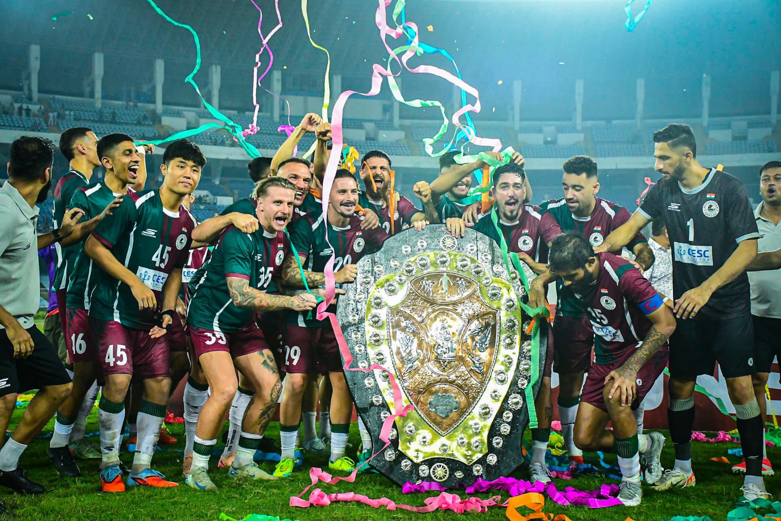 শনি বাসরীয় সন্ধ্যের যুব ভারতী ক্রীড়াঙ্গনে তখন আগাম দীপাবলি। টাই ব্রেকারে চির প্রতিদ্বন্দ্বী ইস্টবেঙ্গলকে ৫-৪ গোলে হারিয়ে ১২৫ তম আইএফএ শিল্ড ঘরে তুলল মোহনবাগান। এর আগে নির্ধারিত ৯০ মিনিটের খেলায় প্রথমে গোল করে এগিয়ে যায় লাল হলুদ। ইস্টবেঙ্গলের হামিদ গোল করে দলকে এগিয়ে দেন। সেই এগিয়ে যাওয়া অবশ্য বেশিক্ষণ স্থায়ী হয়নি। বিরতির আগেই মোহনবাগানকে সমতায় ফেরান আপুঁইয়া। তার পরে ম্যাচে আর গোলের মুখ দেখেনি দু পক্ষের কেউই। খেলা গড়ায় অতিরিক্ত সময়ে। টাই ব্রেকারে গোল রক্ষক পরির্বতন করে ইস্টবেঙ্গল। তাতে অবশ্য শেষ পর্যন্ত লাভ হয়নি দলের। মোহনবাগান পাঁচটি শট গোলে রাখলেও লাল হলুদের জয় গুপ্তার শট রুখে দেন বাগান গোল রক্ষক বিশাল কাইথ। ম্যাচের সেরা হন ইস্টবেঙ্গলের মহেশ সিং। ম্যাচ শেষে পুরস্কার বিতরণ অনুষ্ঠানে দু দলের হাতে পুরস্কার তুলে দেন রাজ্যের ক্রীড়া মন্ত্রী অরূপ বিশ্বাস, অগ্নি নির্বাপক ও জরুরি পরিষেবা মন্ত্রী সুজিত বসু । উপস্থিত ছিলেন আইএফএ চেয়ারম্যান সুব্রত দত্ত,আইএফএ সভাপতি অজিত বন্দোপাধ্যায় সচিব অনির্বাণ দত্ত সহ অন্যান্য কর্তারা। এদিন আইএফএর পক্ষ থেকে রাজ্য সরকারের ত্রাণ ও বিপর্যয় মোকাবিলা তহবিলে ১০ লক্ষ টাকা ক্রীড়ামন্ত্রী অরূপ বিশ্বাসের হাতে তুলে দেওয়া হয়।